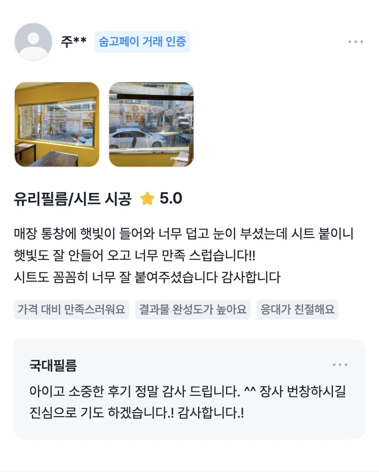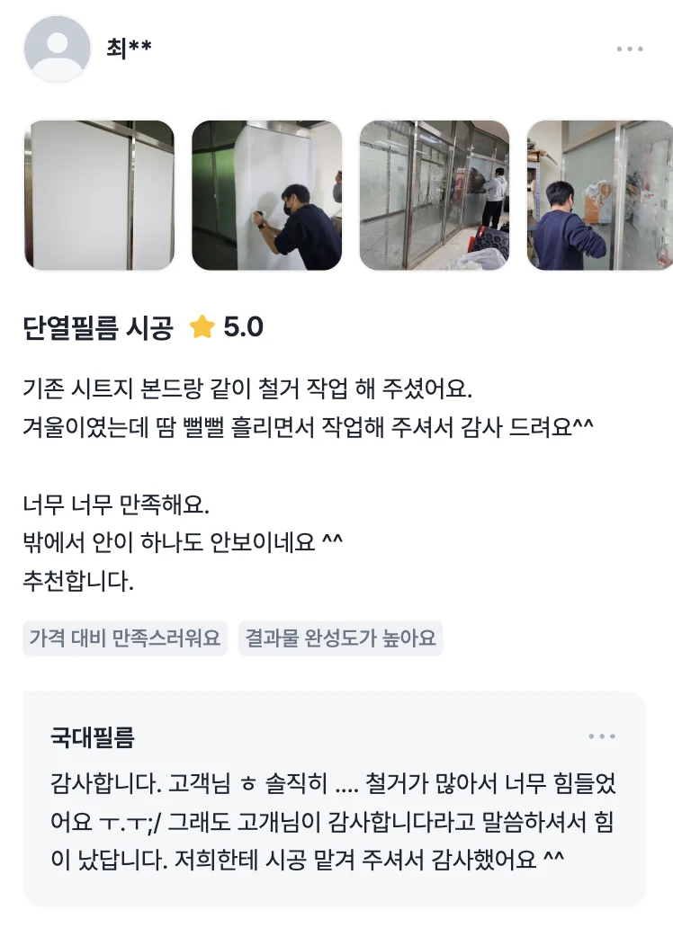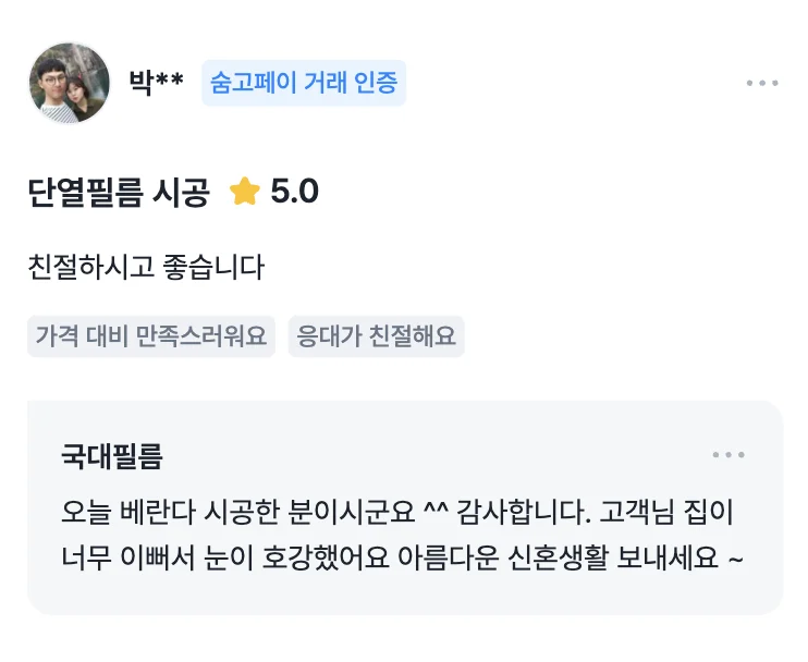 프리미엄 단열필름, 국대필름이 시공합니다.