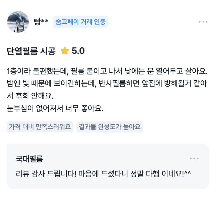 🗣️ 밖에서 보일까 걱정했는데, 이제 커튼 없이 살아요.