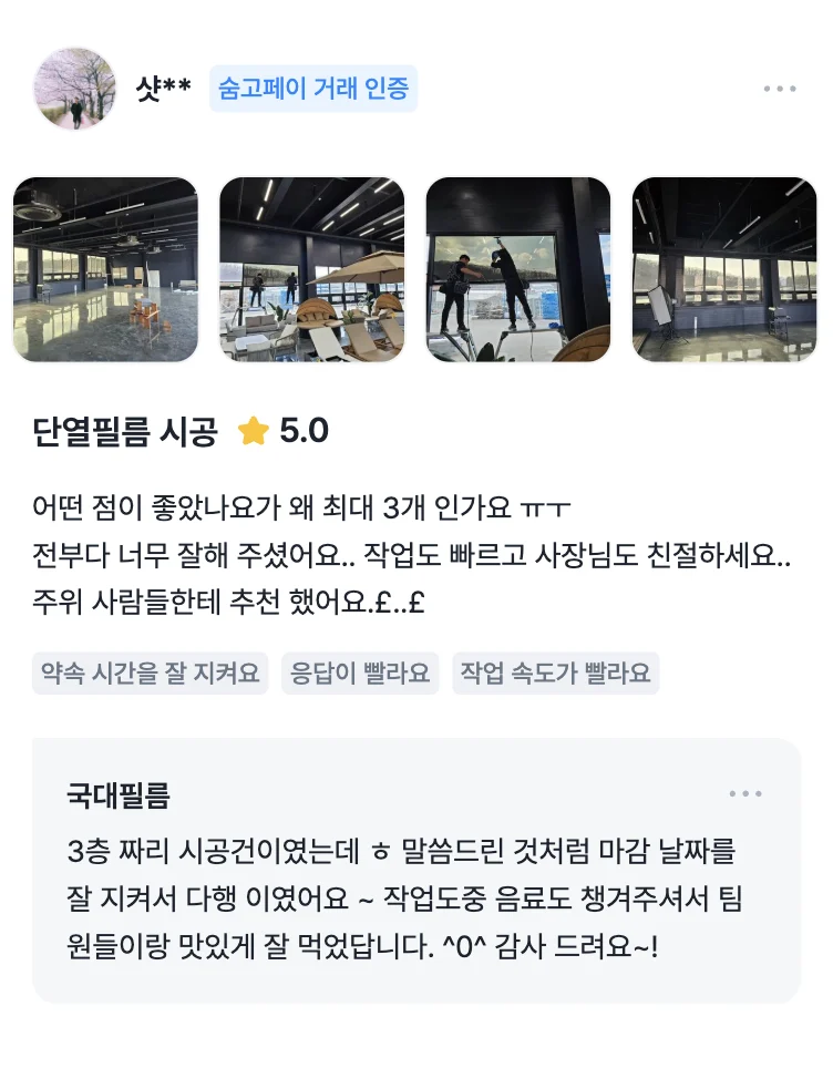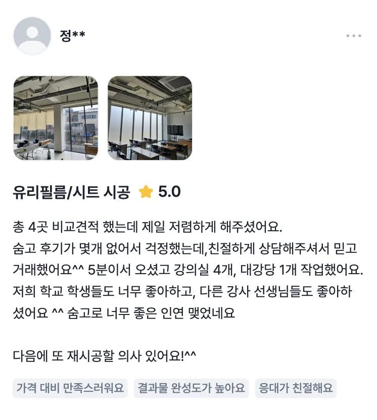 💰 시공 후 효과에 만족하지 못하셨다면,