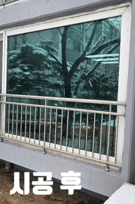 백탁 현상을 떠올리는 시공 전 후 사진인데 후가 훨씬더 안에서 밖이 잘 보입니다.